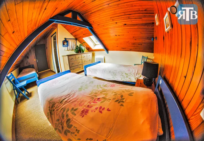 Ouessant a 4 couchages simples dont un lit gigogne, une salle de bain et toilettes privées.